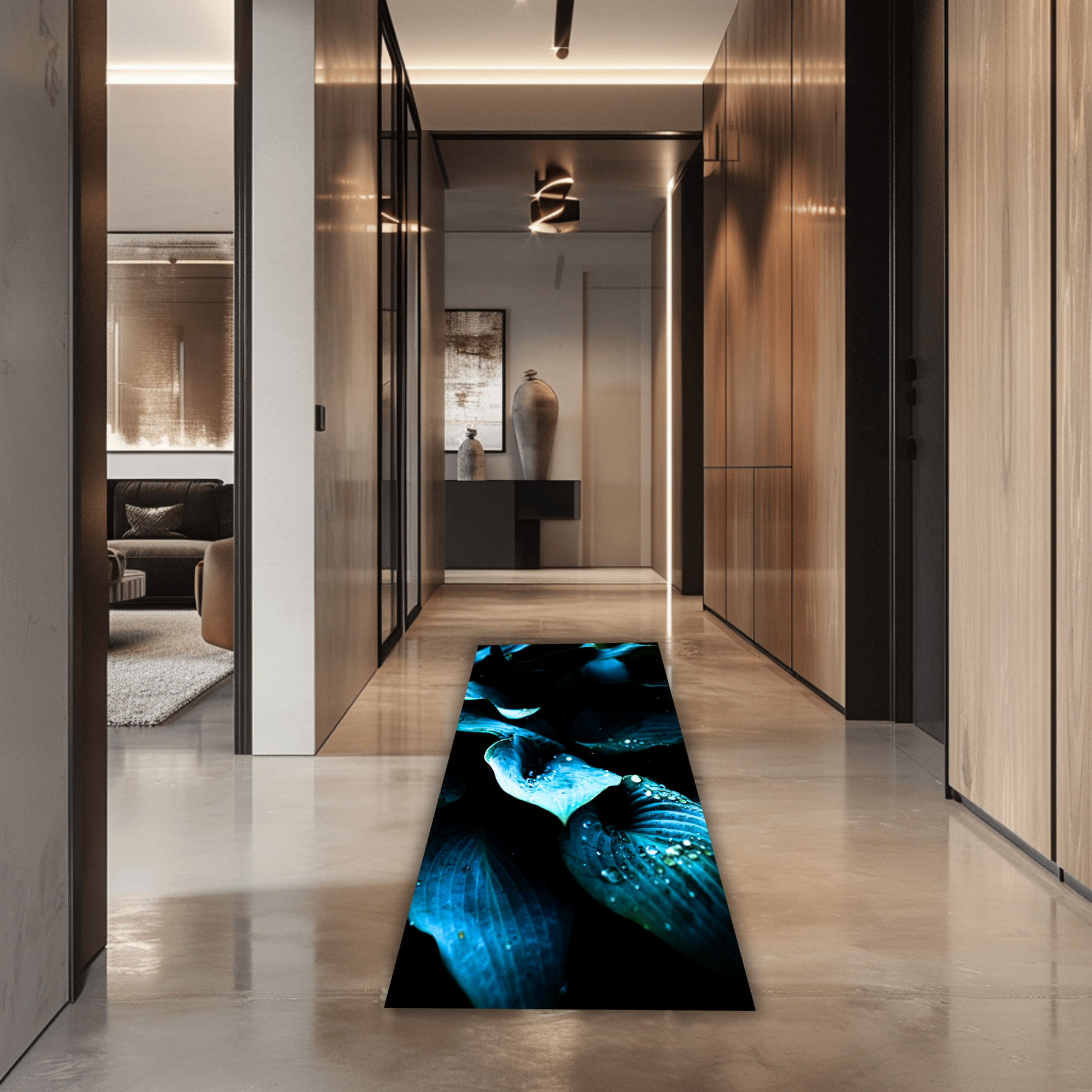The Blue Hostas floor mat combines a moody, sophisticated design with exceptional durability, making it a lasting addition to any space. Crafted with high-quality materials, it offers both aesthetic appeal and practical resilience, ensuring it withstands daily use while enhancing your interior with its distinctive style. Ideal for those seeking a blend of artistry and functionality in their home decor.