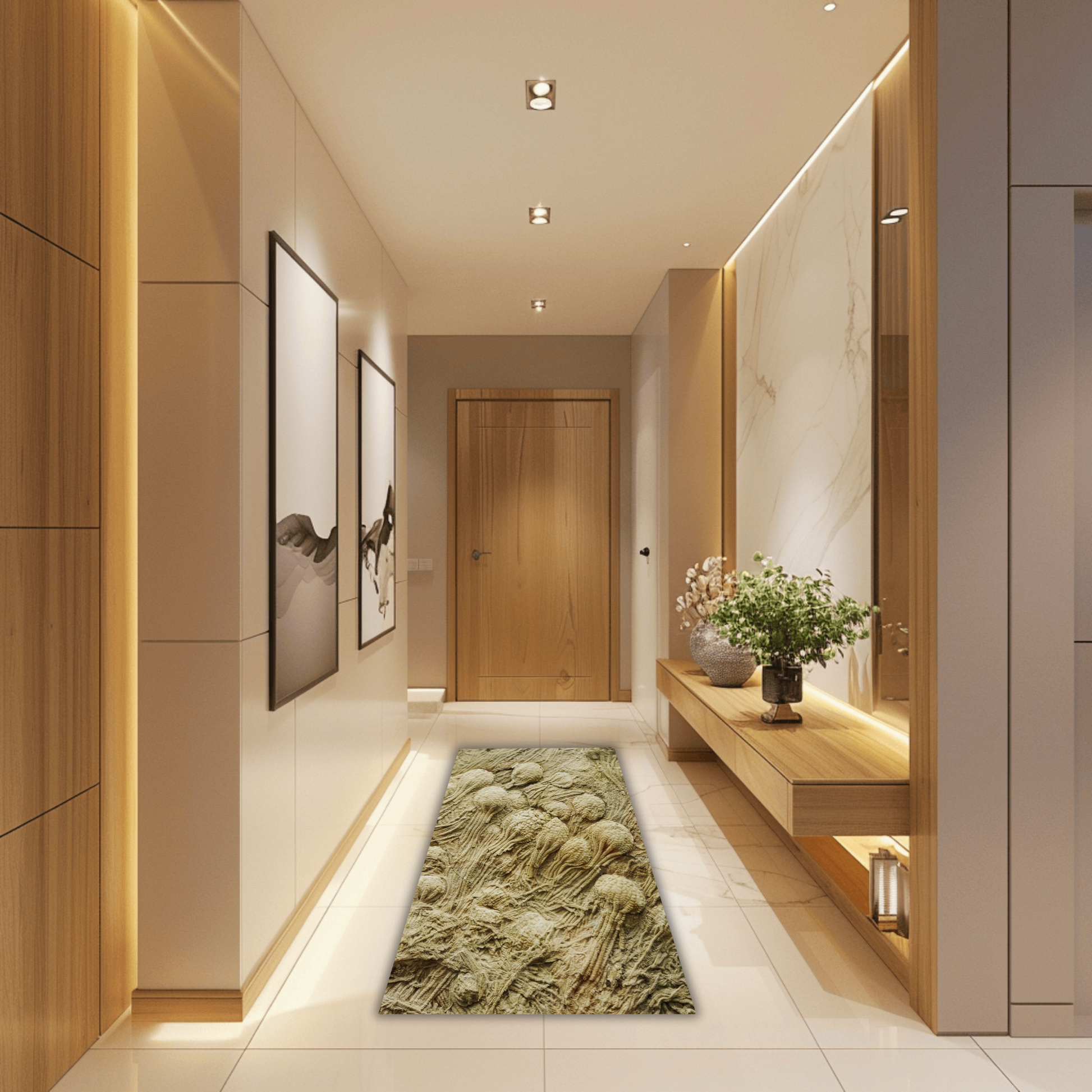 The Crinoids mat is an excellent choice for neutral-coloured floors and interiors, enhancing spaces with its intricate design that adds both interest and texture. It brings subtle depth and sophistication without overwhelming existing decor. This mat not only elevates the aesthetic appeal of your room but also provides durable functionality, making it a practical and stylish addition to any environment seeking understated elegance.