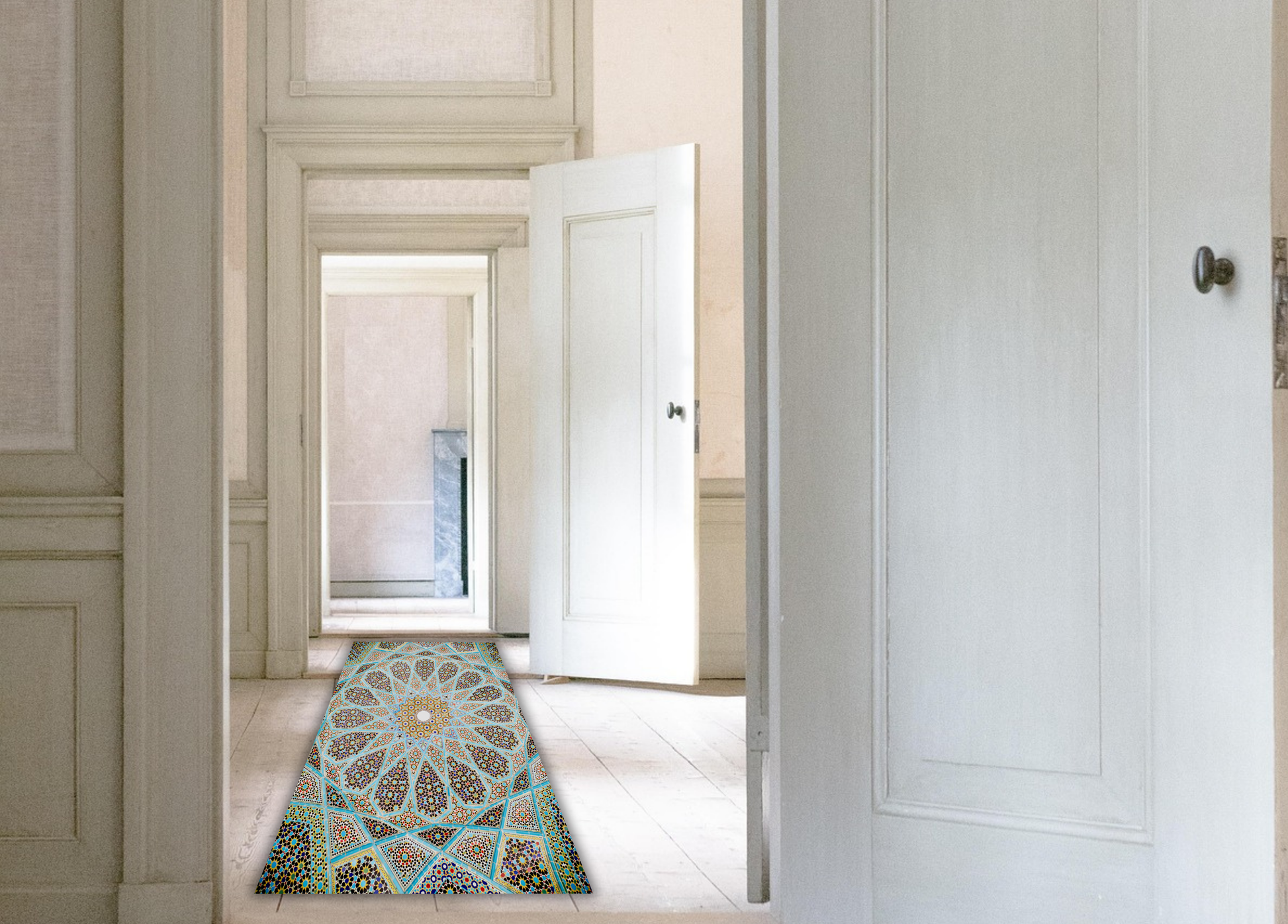 The Persian floor mat is exotic, featuring subtle colors and intricate patterning that bring a refined elegance to any space. Its detailed design draws inspiration from traditional motifs, offering a timeless aesthetic that complements both classic and contemporary interiors. Perfect for those who appreciate expert craftsmanship and understated luxury, The Persian mat enhances your environment with a touch of cultural richness and lasting beauty.